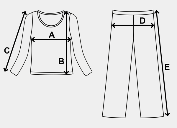 A termékekről teljesebb képet adva elkészítettük a pontos méreteket tartalmazó táblázatokat. A ruhadarabokat kifeszített állapotban, mérőszalaggal mérjük.