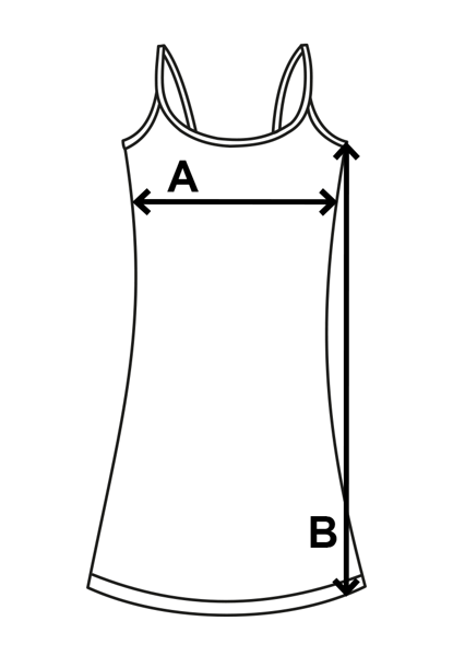 A hálóing pamutből és egyéb adalékanyagból készült és jól illeszkedik az alakhoz. Kerek nyakkivágású és széles vállpántokkal rendelkezik. Az alsó szegélye lekerekített szabású. A hálóing kb. 87 cm hosszú (S-es méretben mérve). Azonos mintával kapható a rövid ujjú Frankie hálóing is.