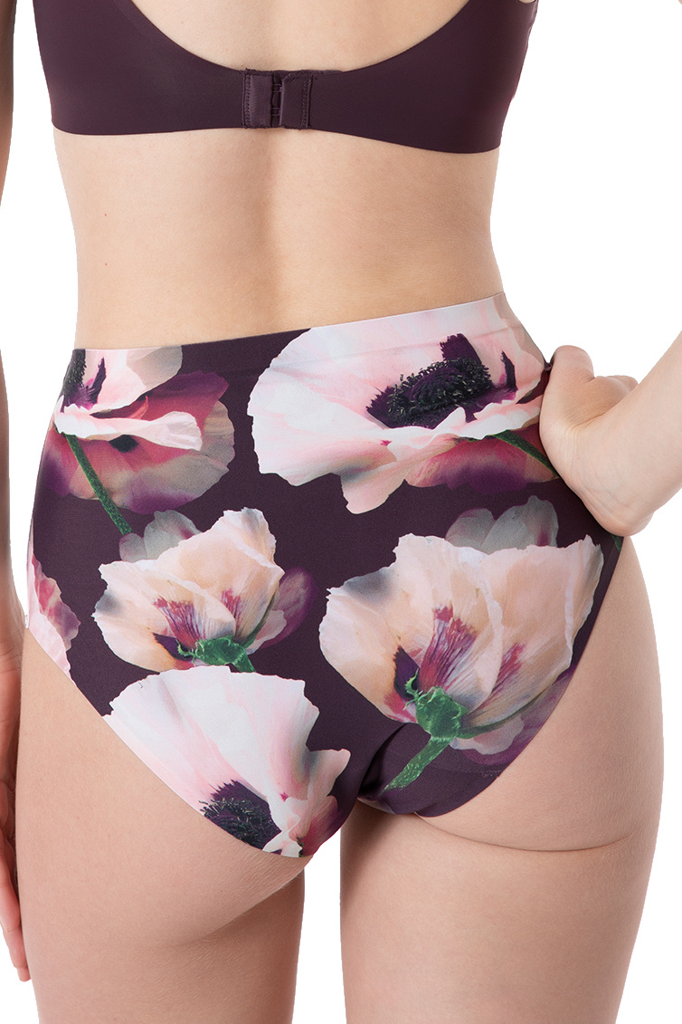 A Velvet Bloom Maxi bugyi varrásmentes, Invisible Line® technológiával készült. 89%-ban poliamidból, 10%-ban elasztánból és 1%-ban pamutból gyártott. Színes virágos mintájú, lilára hangolt. Anyaga poliamid és elasztán keveréke a kényelmes viselet és a rugalmasság érdekében. A bugyi dobozba csomagolt. A varrásmentes dizájn sima megjelenést biztosít, a ruházat alatt nem látszanak a varrások.